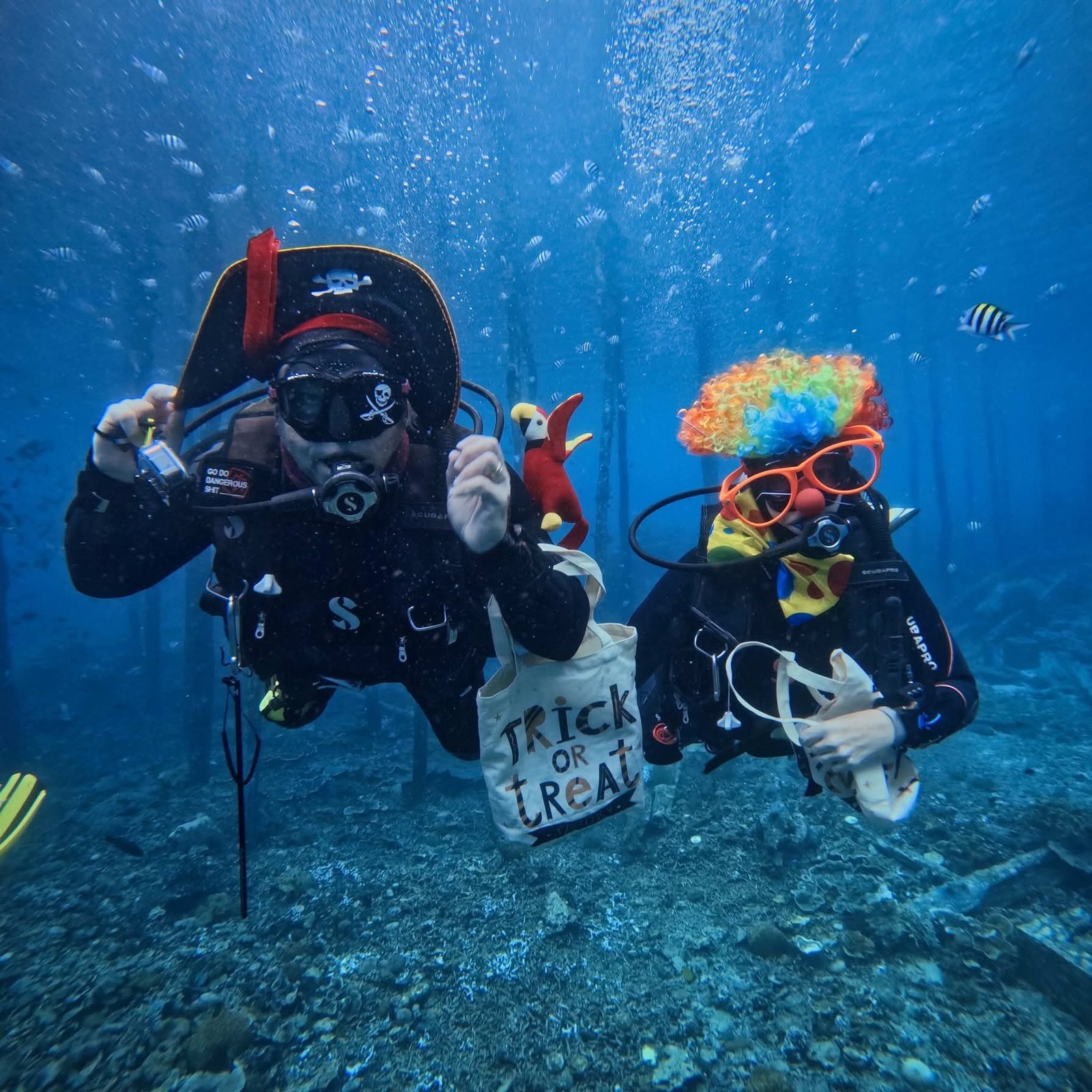 Raja Ampat, Papua Barat Daya(LA) Perayaan Halloween tahun ini berlangsung dengan cara yang tak biasa. Sejumlah turis mancanegara yang berlayar menggunakan kapal pesiar mewah merayakan Halloween di bawah laut Raja Ampat, destinasi wisata kelas dunia yang dikenal sebagai Taman Nasional Laut paling indah di Indonesia.