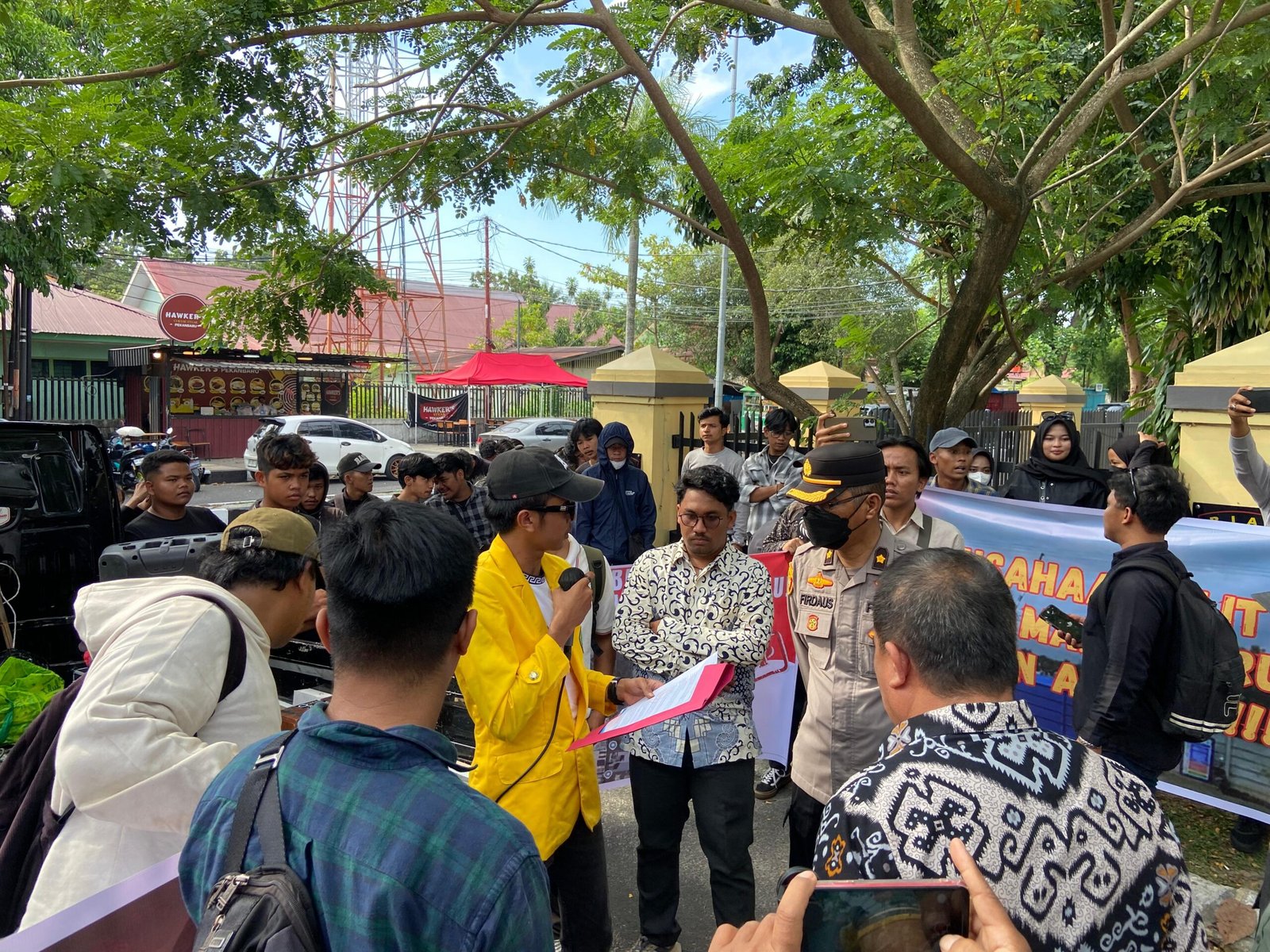 Aksi yang dimulai sejak pukul 13.30 WIB itu berlangsung damai. Massa membawa spanduk dan pengeras suara sambil menyerukan tuntutan agar Polda Riau segera melakukan penyelidikan terhadap aktivitas PT Elnusa yang dinilai tidak sesuai dengan ketentuan perizinan lingkungan.